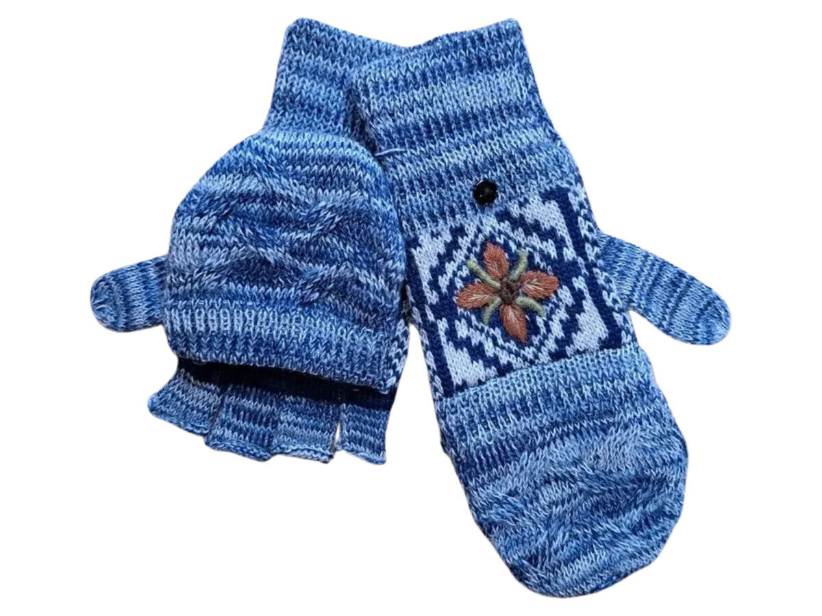 A Frost toned melange knit compliments the embroidery of our fleece lined Frosty Mosaic Glittens. A great pairing with our Frosty Mosaic Hat.